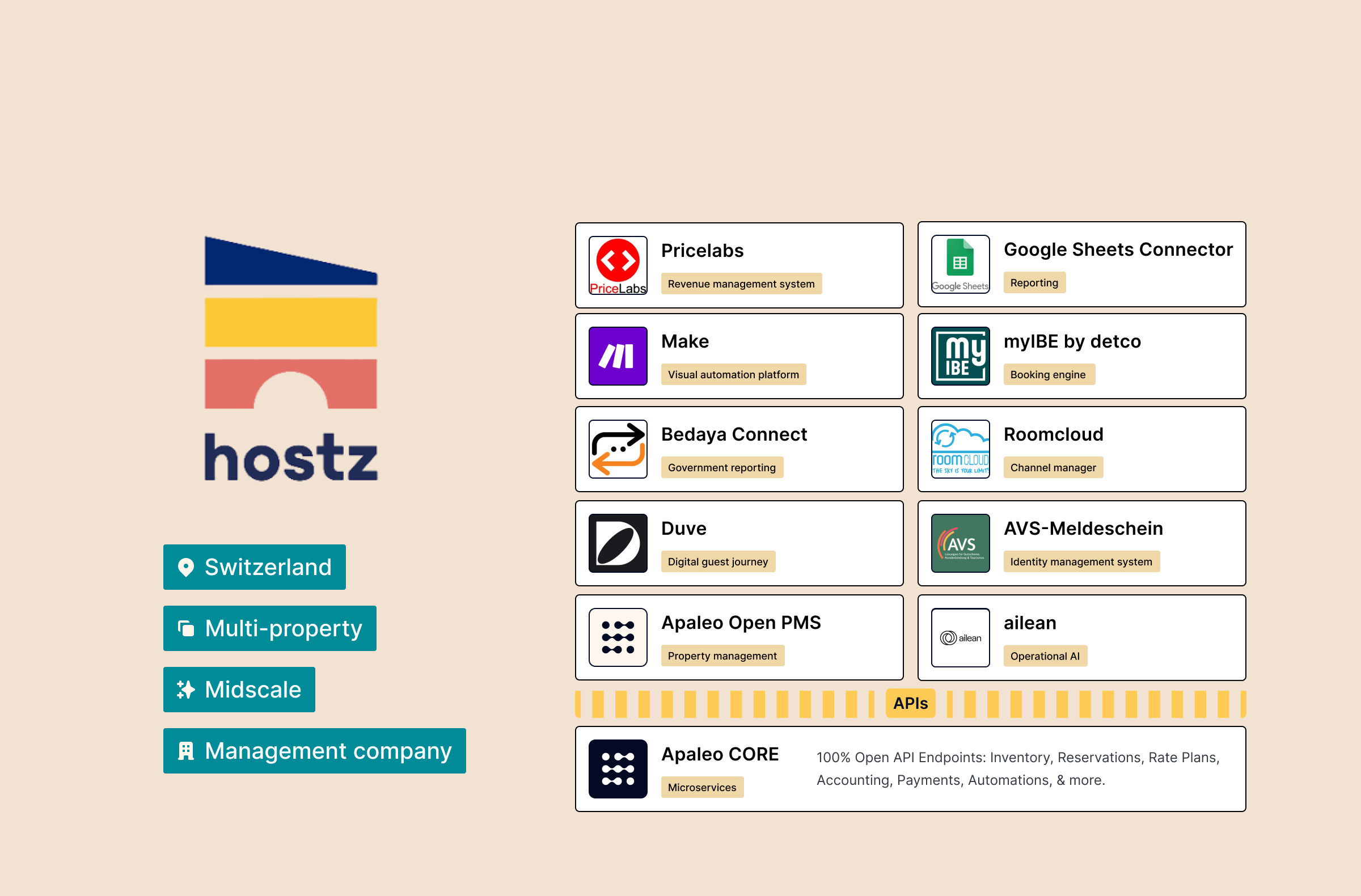 Embracing a state-of-the-art tech stack, hostz uses Apaleo as their property management platform. They are among the first to test and implement ailean, a pioneering operational AI that is fully integrated within Apaleo and not only communicates with guests 24/7 in multiple languages, but actually will be able to execute front & back office tasks based on communication. We are happy to share their journey of a completely AI-driven digital transformation.