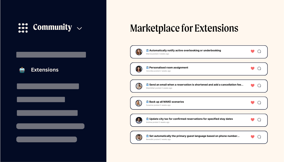 We gather hotel professionals who are digitalizing their properties and navigating similar digital goals and challenges. Whether you’re building your first tech stack, crafting advanced automations or implementing AI, you’ll find like-minded professionals to exchange ideas and grow with.